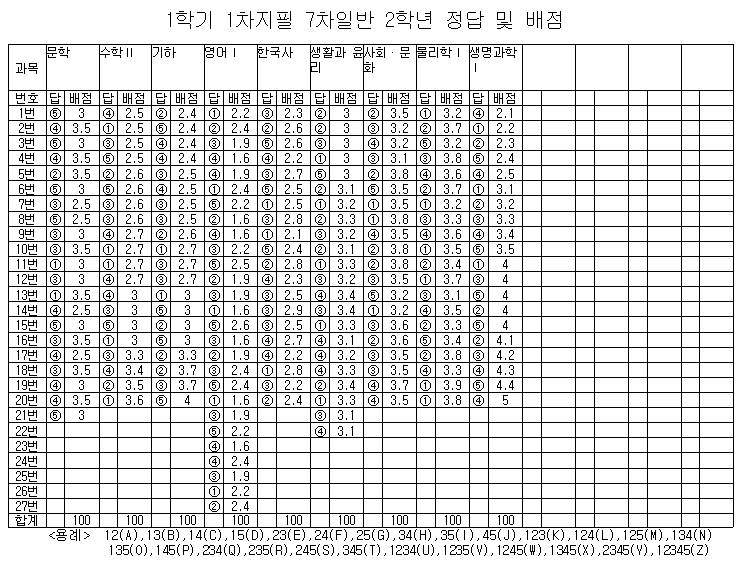 1학기 1차 지필평가 정답 및 배점(2학년).png