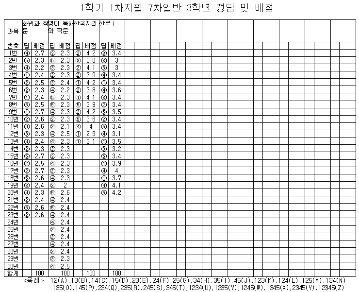 1학기 1차 지필평가 정답 및 배점(3학년).png