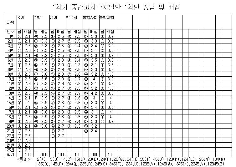 2022학년도 1학기 1차 지필고사 1학년 정답 및 배점.png