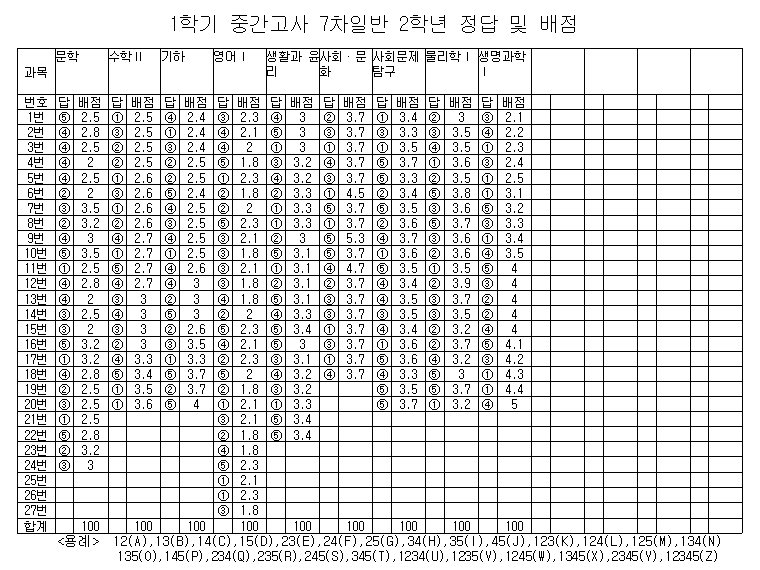 2022학년도 1학기 1차 지필고사 2학년 정답 및 배점.png