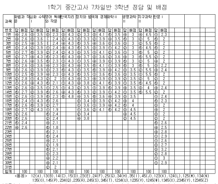 2022학년도 1학기 1차 지필고사 3학년 정답 및 배점.png