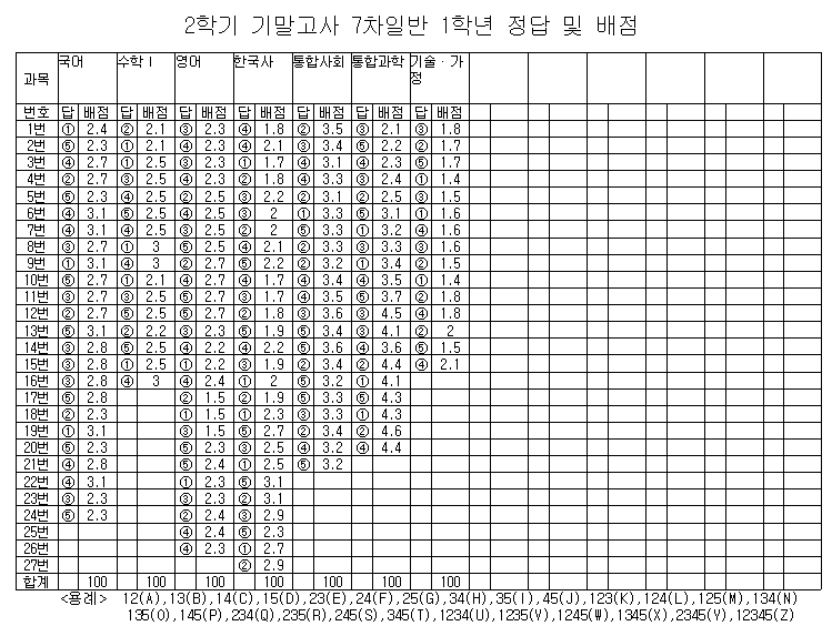 2022학년도 2학기 2차 지필평가 정답 및 배점(1학년).png